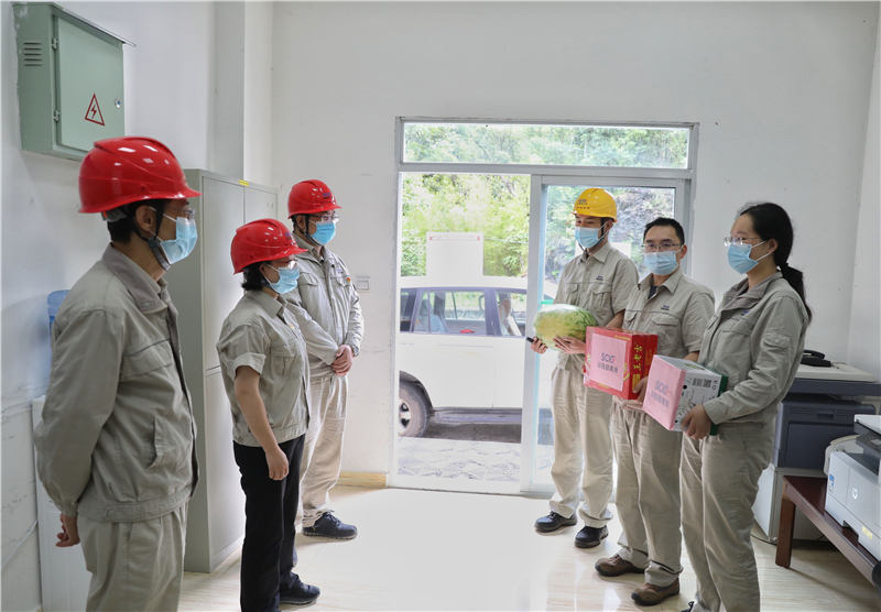 7月31日,田灣河公司黨委副書記、工會(huì)主席楊坤,總經(jīng)濟(jì)師段明帶隊(duì),赴流域三站檢查疫情防控與汛期安全生產(chǎn)工作,同時(shí)為三站值守員工送上工會(huì)準(zhǔn)備的金銀花露、涼茶和西瓜等消暑物品。黨群工作部、安全生產(chǎn)部、發(fā)電部相關(guān)負(fù)責(zé)人陪同慰問(wèn)。