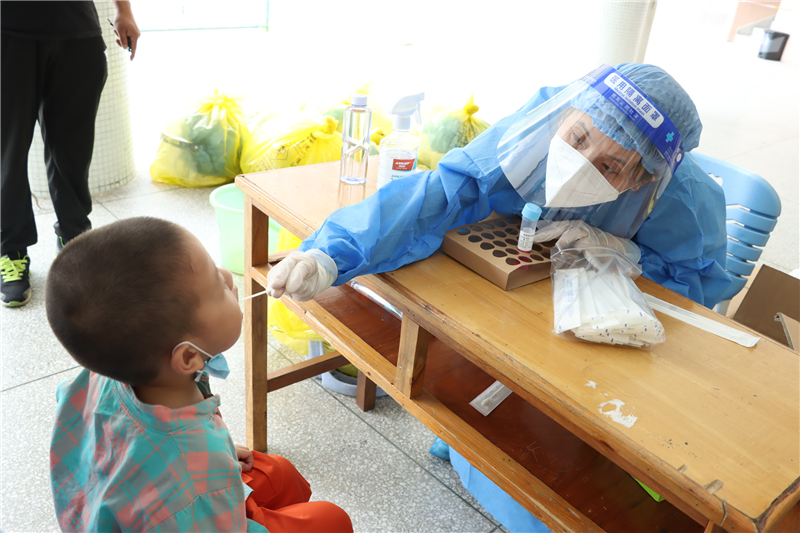 核酸檢測(cè)現(xiàn)場(chǎng),醫(yī)務(wù)人員身著防護(hù)服,佩戴口罩、護(hù)目鏡和醫(yī)用手套,嚴(yán)格按照檢測(cè)規(guī)范流程為學(xué)生們進(jìn)行核酸采樣工作,醫(yī)務(wù)人員操作熟練、動(dòng)作迅速,師生及教職員工積極配合醫(yī)務(wù)人員,現(xiàn)場(chǎng)秩序井然。在采樣工作完成后,醫(yī)務(wù)人員不忘進(jìn)行現(xiàn)場(chǎng)消毒消殺及醫(yī)療廢棄物處置,整個(gè)過(guò)程有條不紊,安全規(guī)范開(kāi)展。
