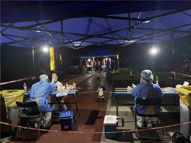 2日晚間,秋雨突襲,氣溫驟降,核酸采樣系統(tǒng)崩潰給正在緊鑼密鼓進行的核酸采樣工作帶來了前所未有的挑戰(zhàn)。面對焦急的居民,醫(yī)護人員和社區(qū)工作人員耐心地一遍遍向各位居民解釋,安撫大家的情緒,有的醫(yī)務(wù)人員直接站在凳子上向天空尋找著信號。