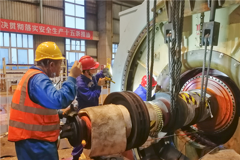 “轉子聯(lián)軸滑塊已取出”“汽側轉子護環(huán)已通過?!彪S著對講機里短促有力的發(fā)聲,公司2號發(fā)電機抽轉子一次成功,標志著2號發(fā)電機檢修工作完成重要節(jié)點,為高質量完成發(fā)電機檢修任務奠定了堅實基礎。