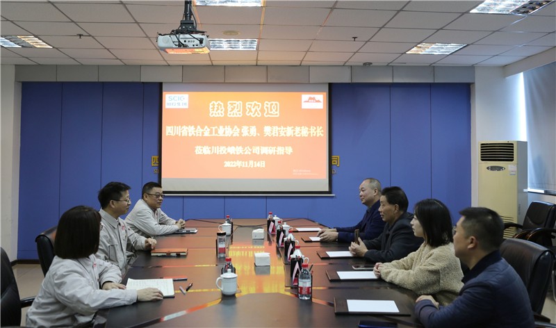 11月14日,四川省鐵合金工業(yè)協(xié)會現(xiàn)任秘書長張勇、前任秘書長樊君安一行4人赴川投峨鐵公司調(diào)研指導(dǎo)工作,公司黨委書記、董事長唐華應(yīng),黨委副書記、總經(jīng)理陳新龍,黨委委員、總會計(jì)師方玲參加會議。