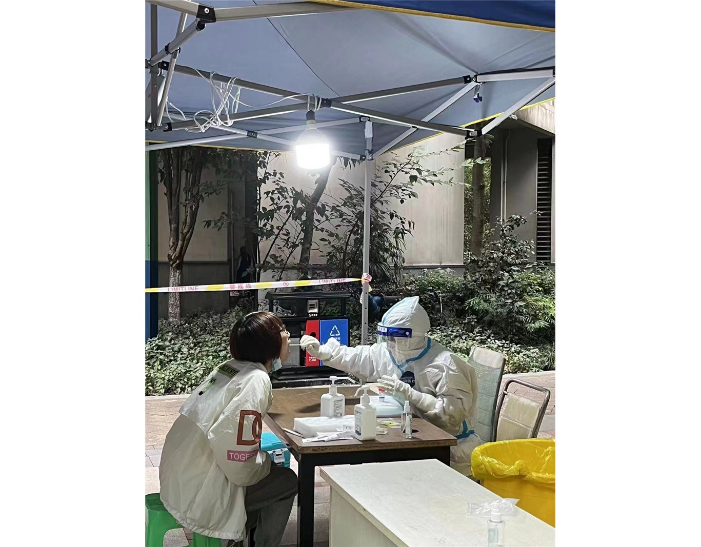 為堅(jiān)決打贏疫情防控阻擊戰(zhàn)、殲滅戰(zhàn),全力保障重慶市民的身體健康,重慶華西牙科醫(yī)院迅速響應(yīng)區(qū)疫情防控工作指揮部號(hào)召,于11月11日晚連夜集結(jié)了一支由15名醫(yī)護(hù)人員組成的核酸篩查支援隊(duì)伍,12日一早,他們便緊急奔赴渝北區(qū)雙鳳橋等區(qū)域的街道核酸采樣點(diǎn)、赴高風(fēng)險(xiǎn)樓棟開展上門核酸采樣,有序組織居民開展核酸篩查。支援隊(duì)伍到達(dá)街道后迅速投入工作,每天從早上7點(diǎn)開始采樣,中午休息片刻后便一直采樣到晚上9點(diǎn)多,由于大多數(shù)采樣點(diǎn)設(shè)在戶外,支援人員穿著薄薄的防護(hù)服,一輪工作下來大家手腳都凍僵了。為了減少居民排隊(duì)等候時(shí)間,支援人員們不敢喝水、不敢多吃,就是為了避免上廁所,爭取早一點(diǎn)出采樣結(jié)果,以便上級(jí)部門根據(jù)數(shù)據(jù)研判下一步防疫措施。連續(xù)奮戰(zhàn)一天后大家看上去都非常的疲憊,摘掉口罩和手套后,臉上和手上更是布滿勒痕,但他們依然咬緊牙關(guān),主動(dòng)申請(qǐng)到“追陽”專班采樣,繼續(xù)奮戰(zhàn)在抗疫最前線,用行動(dòng)詮釋醫(yī)者擔(dān)當(dāng),用汗水踐行醫(yī)者使命,用責(zé)任和堅(jiān)守筑牢疫情防控屏障。