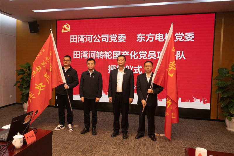 到達活動現(xiàn)場后,公司一行首先參觀了東方電機重跨廠房、東電印記文化墻、數(shù)字化車間、水力試驗臺,了解了東方電機的基礎生產(chǎn)情況和轉輪國產(chǎn)化科研、生產(chǎn)進度。隨后,雙方進行了座談交流。座談中,雙方黨委委員共同領學了習近平總書記《高舉中國特色社會主義偉大旗幟為全面建設社會主義現(xiàn)代會國家而團結奮斗——在中國共產(chǎn)黨第二十次全國代表大會上的報告》;雙方黨委、基層黨組織代表分享了黨的二十大精神學習心得;對“轉輪國產(chǎn)化”項目進展情況及下階段工作的開展情況進行了交流,并舉行了“田灣河轉輪國產(chǎn)化黨員攻關隊”成立授旗儀式。