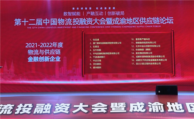 近日,第十二屆中國(guó)物流投融資大會(huì)暨成渝地區(qū)供應(yīng)鏈論壇在成都開(kāi)幕。會(huì)上,川投信產(chǎn)所屬川投云鏈憑借在供應(yīng)鏈金融產(chǎn)品、技術(shù)、服務(wù)等方面的積極探索和創(chuàng)新,被授予“2021-2022年度物流與供應(yīng)鏈金融創(chuàng)新企業(yè)”榮譽(yù)稱(chēng)號(hào)。