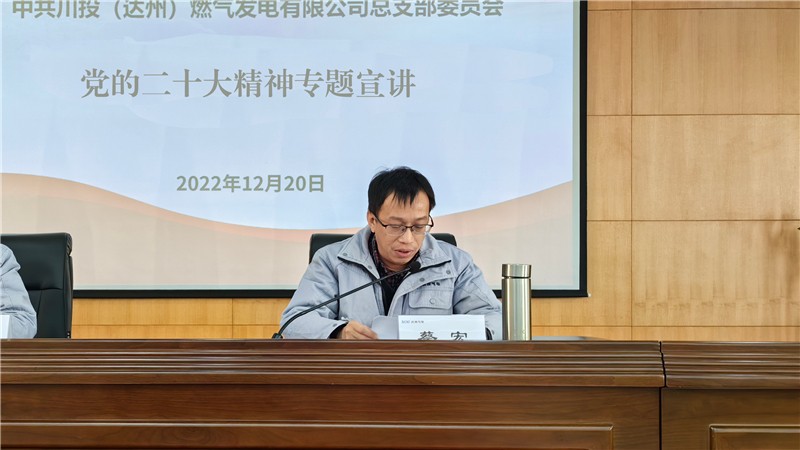 為深入學(xué)習(xí)宣傳貫徹落實(shí)黨的二十大精神,12月20日,達(dá)州氣電黨總支書記、總經(jīng)理蔡宏開(kāi)展黨的二十大精神專題宣講。公司領(lǐng)導(dǎo)、中層干部、全體黨員、入黨積極分子參加會(huì)議。