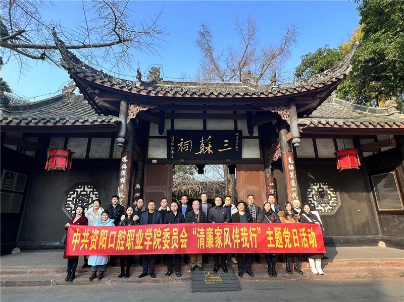 為進(jìn)一步加強(qiáng)黨風(fēng)廉政建設(shè),增強(qiáng)廉潔自律意識(shí),大力弘揚(yáng)優(yōu)良家風(fēng)家訓(xùn), 1月6日下午,中共資陽口腔職業(yè)學(xué)院委員會(huì)開展“清廉家風(fēng)伴我行”主題黨日活動(dòng),學(xué)院各支部書記、黨員代表參觀了眉山市廉政教育基地三蘇祠。