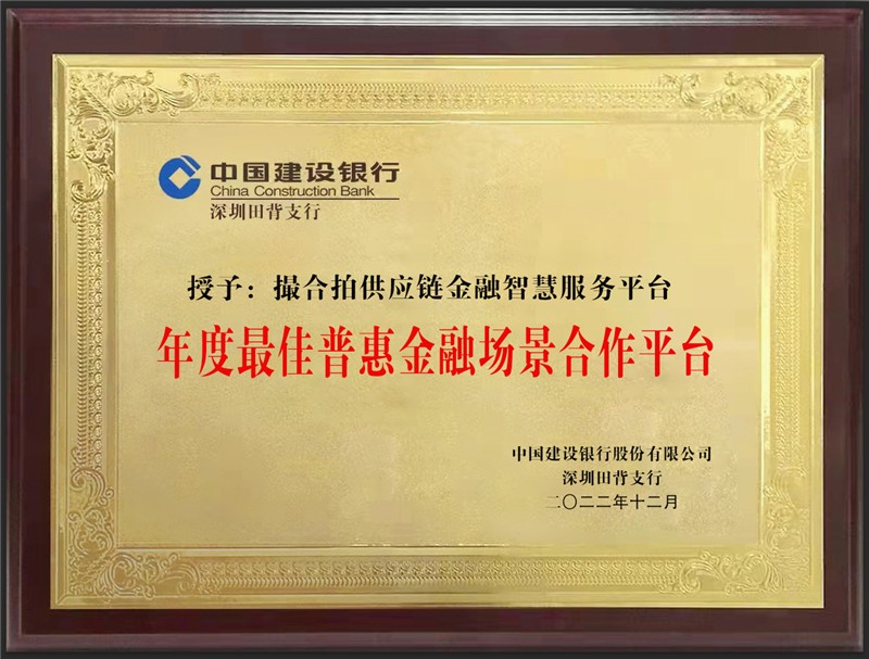 撮合拍平臺此次喜獲“年度最佳普惠金融場景合作平臺”殊榮,是平臺與建行深圳分行緊密合作的見證,也是建行深圳分行對撮合拍平臺的金融科技服務(wù)能力高度肯定,以及對平臺能夠繼續(xù)為客戶提供更多優(yōu)質(zhì)服務(wù)、創(chuàng)新服務(wù)的期許。未來,撮合拍平臺將持續(xù)加強(qiáng)技術(shù)研發(fā)、模式創(chuàng)新、客戶拓展,與建行深圳分行展開更深度、更全面的合作,強(qiáng)化科技賦能,拓展更豐富的金融服務(wù)場景,開啟更廣闊的新征程!