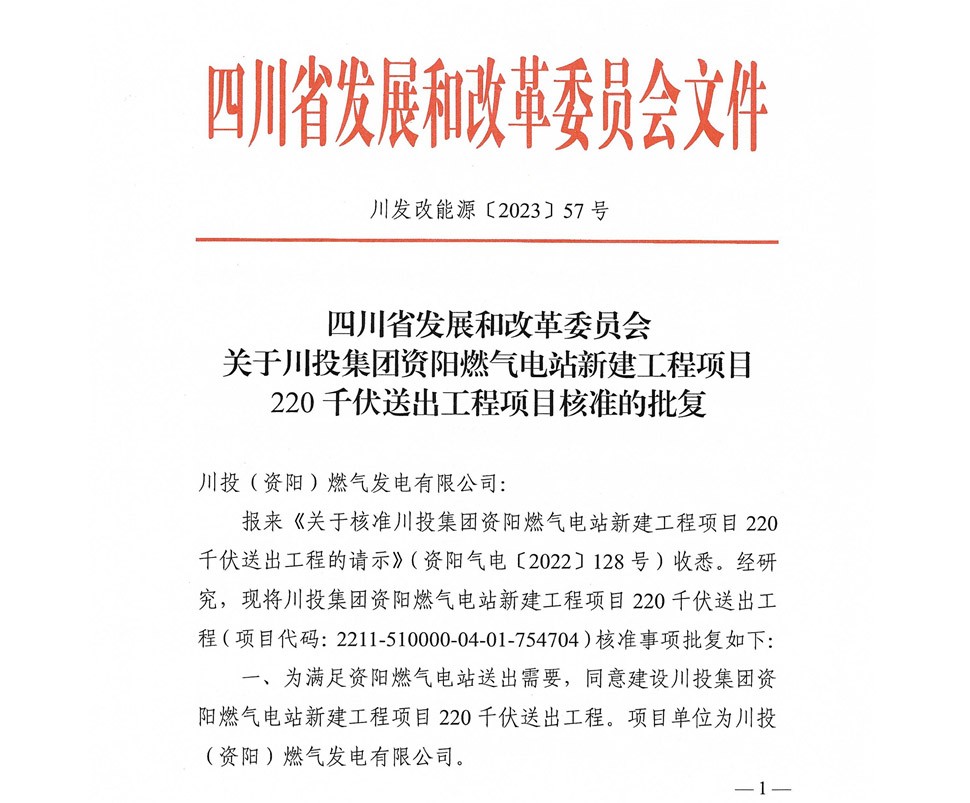 2月9日,川投集團資陽燃氣電站新建工程項目220千伏送出工程項目獲得省發(fā)改委核準批復。