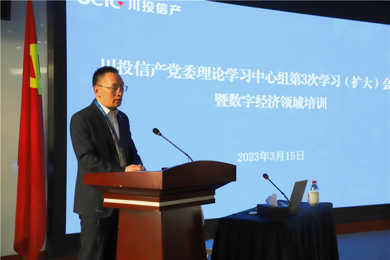 3月15日,川投信產(chǎn)黨委組織召開黨委理論學習中心組第3次學習(擴大)會議暨數(shù)字經(jīng)濟領(lǐng)域培訓會,專題進行數(shù)字經(jīng)濟專業(yè)知識培訓。川投信產(chǎn)及所屬企業(yè)相關(guān)干部職工60余人參會。