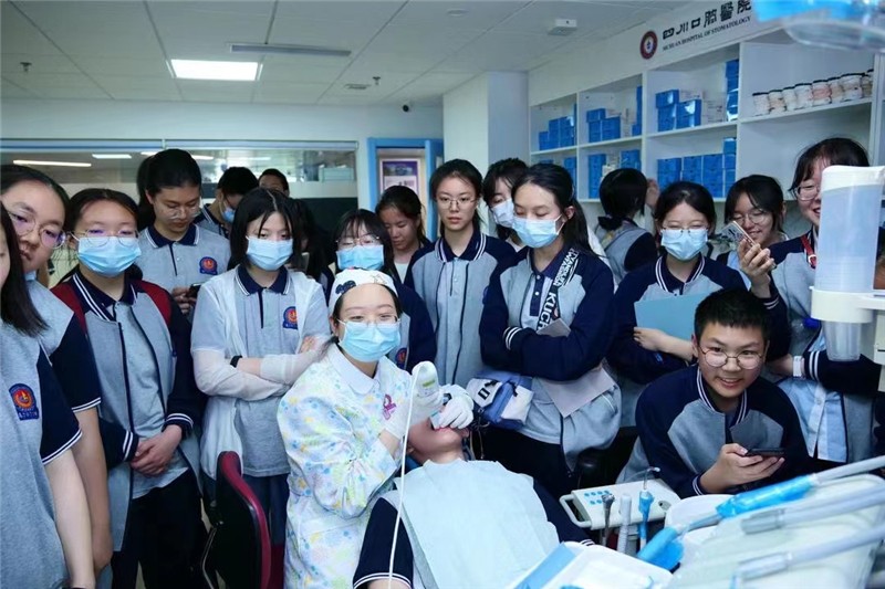為進(jìn)一步提升青少年口腔保健意識(shí),讓學(xué)生們?cè)谏鐣?huì)實(shí)踐中探索口腔醫(yī)學(xué)奧秘,5月20日,四川口腔醫(yī)院舉辦了“走進(jìn)口腔醫(yī)學(xué)”研學(xué)活動(dòng),來(lái)自成都外國(guó)語(yǔ)學(xué)校的40余名師生參與。