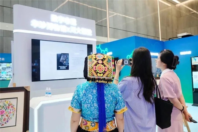 走進室內(nèi),智勝集成聚焦數(shù)字非遺、數(shù)字文博,特別聯(lián)合成都華珍藏羌文化博物館,帶來環(huán)球影業(yè)聯(lián)名侏羅紀(jì)世界數(shù)字文創(chuàng)等產(chǎn)品,并邀請藏羌織繡代表性傳承人蘇先芹老師蒞臨會場現(xiàn)場表演工藝制作,展現(xiàn)數(shù)字技術(shù)、國際IP與中國傳統(tǒng)藝術(shù)的絕妙組合。觀眾還可通過文物數(shù)字在線互動展示系統(tǒng)的大尺寸觸摸屏查詢博物館館藏文物信息,觀賞三維模型動態(tài)展示,體驗多角度、全面立體的視聽語言,感受數(shù)字文博時代魅力。