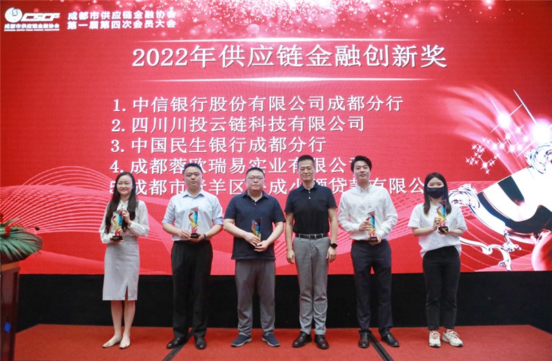 2023年6月2日,成都市供應(yīng)鏈金融協(xié)會(huì)一屆四次會(huì)員大會(huì)隆重召開,川投云鏈榮獲“2022年服務(wù)地方經(jīng)濟(jì)突出貢獻(xiàn)獎(jiǎng)”和“2022年供應(yīng)鏈金融創(chuàng)新獎(jiǎng)”兩項(xiàng)殊榮。