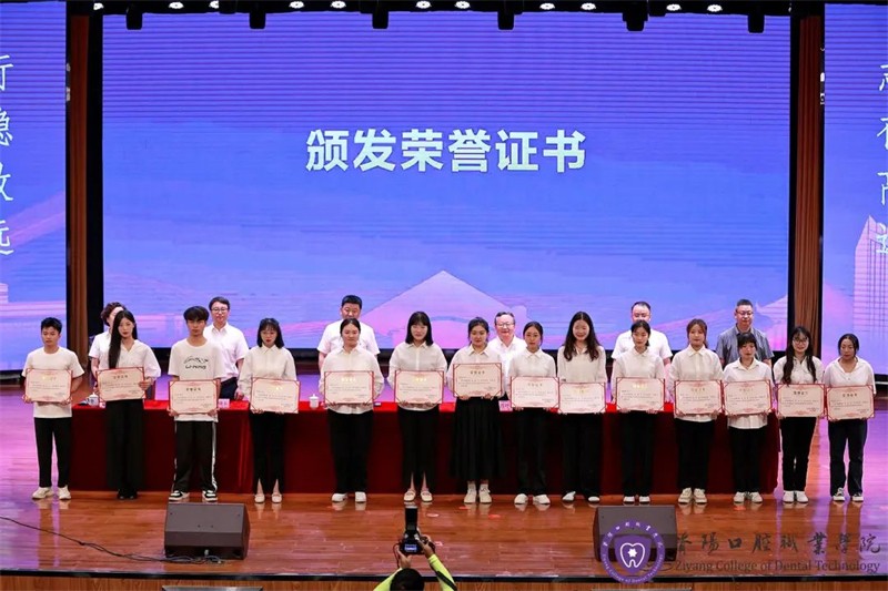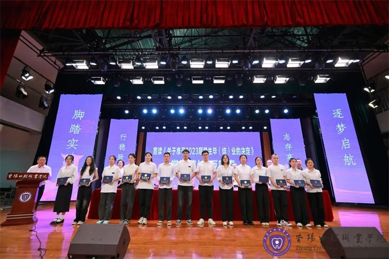 院長(zhǎng)萬呼春宣讀《資陽(yáng)口腔職業(yè)學(xué)院關(guān)于準(zhǔn)予2023屆學(xué)生畢(結(jié))業(yè)的決定》,黨委副書記李曉東宣讀省級(jí)、校級(jí)優(yōu)秀畢業(yè)生表彰決定。