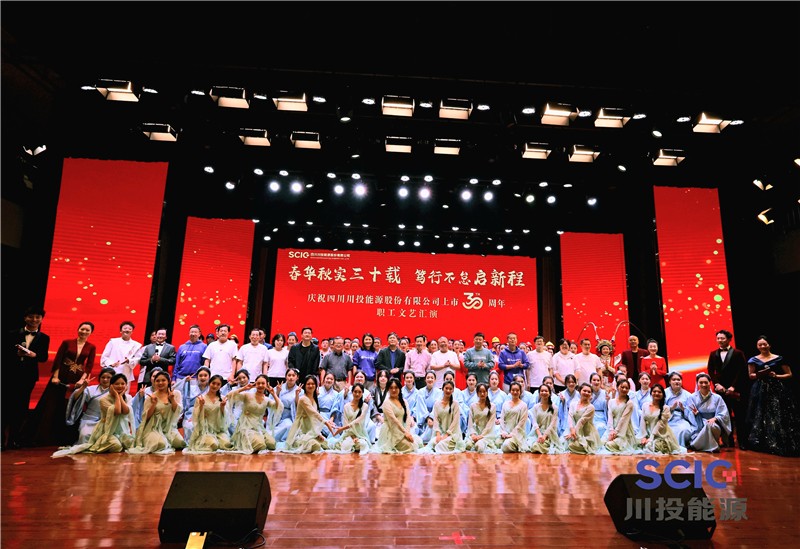 匯演現(xiàn)場,一曲激情澎湃的《鼓鳴盛世》揭開序幕,盡致展現(xiàn)國家繁榮富強,人民奮發(fā)向上的美好圖景?!断蛑诙€百年奮斗目標(biāo),前進!》,讓大家在快板聲中沐浴黨的二十大精神光輝,激勵廣大職工牢記總書記殷殷囑托,砥礪奮進新時代新征程。詩歌朗誦《春華秋實三十載 篤行不怠啟新程》,全景式回顧了川投能源上市30年來,篳路藍縷、奮發(fā)圖強,成長為四川省參控股裝機規(guī)模最大的能源上市公司的壯闊歷程?!督?jīng)典古文誦讀》、川劇《川劇變臉》、歌曲《不忘初心》《新時代進行曲》等節(jié)目輪番上場,舞蹈《川投水電人》《燈》《小城謠》《心彝銀江》精彩不斷,現(xiàn)場氣氛高潮迭起,贏得觀眾陣陣掌聲。最后,隨著《歌唱祖國》旋律的響起,在全場大合唱中,演出圓滿落幕。