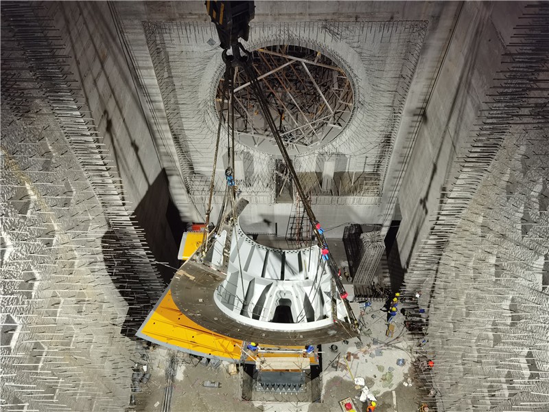 10月21日,在熱火朝天的銀江水電站建設(shè)工地,重達(dá)75噸的首臺(tái)機(jī)組管形座第一瓣內(nèi)殼在400t重型履帶吊車的吊裝下順利到位,標(biāo)志著銀江水電站工程建設(shè)全面進(jìn)入到機(jī)組安裝階段。
