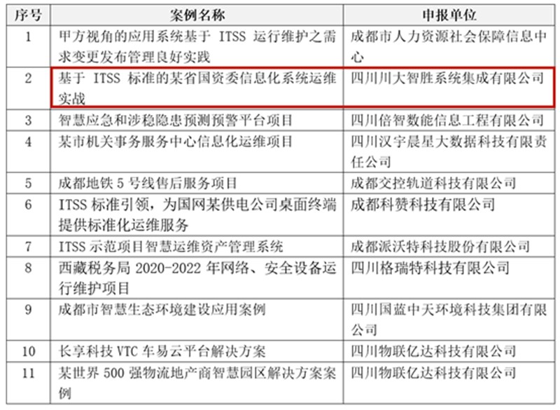 日前,成都市工業(yè)互聯(lián)網(wǎng)發(fā)展中心聯(lián)合四川省軟件行業(yè)協(xié)會開展征集ITSS(信息技術(shù)服務(wù)標(biāo)準(zhǔn))優(yōu)秀應(yīng)用案例工作,并于2023年12月評選出11個(gè)優(yōu)秀案例。公司所屬智勝集成申報(bào)的“基于 ITSS 標(biāo)準(zhǔn)的某省國資委信息化系統(tǒng)運(yùn)維實(shí)戰(zhàn)”案例成功入選。