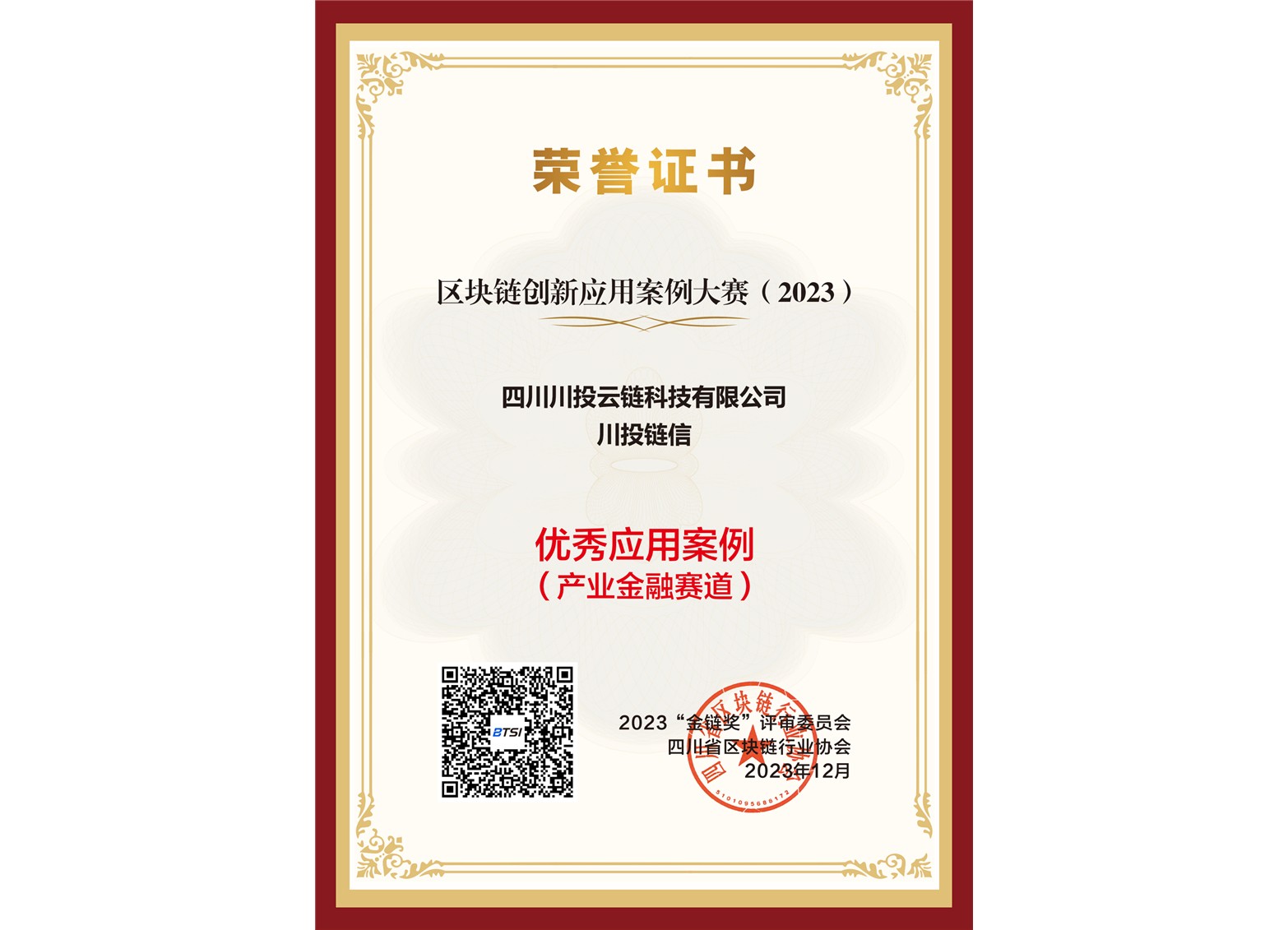 會(huì)上頒發(fā)了“2023金鏈獎(jiǎng)”,該獎(jiǎng)項(xiàng)由四川省區(qū)塊鏈行業(yè)協(xié)會(huì)和區(qū)塊鏈可信服務(wù)機(jī)構(gòu)聯(lián)盟評(píng)選,通過案例征集、技術(shù)測(cè)評(píng)和專家評(píng)審,來自全國(guó)的54個(gè)案例最終入圍。川投云鏈憑借在區(qū)塊鏈領(lǐng)域技術(shù)創(chuàng)新能力、產(chǎn)品研發(fā)等方面的成果,榮獲區(qū)塊鏈創(chuàng)新優(yōu)秀應(yīng)用案例獎(jiǎng)(產(chǎn)業(yè)金融賽道)。