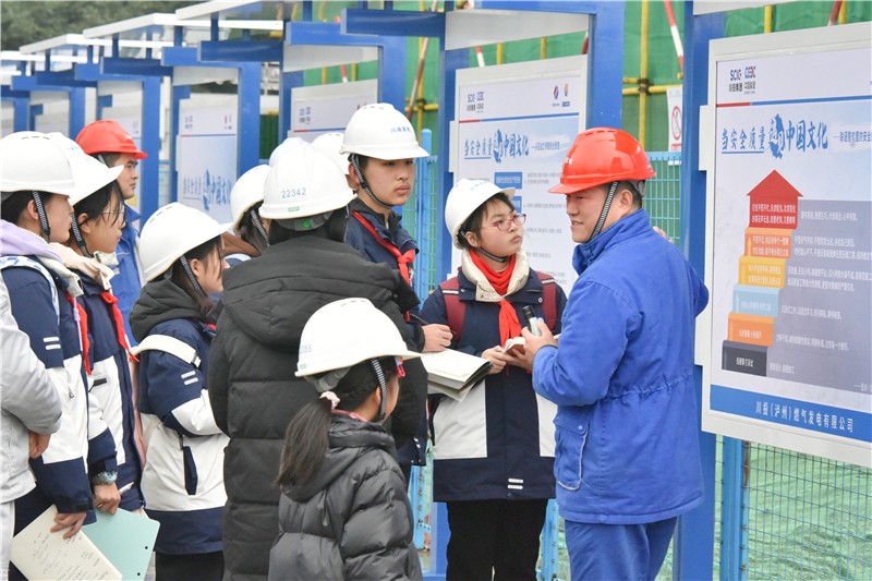 一進(jìn)入公司,同學(xué)們就被高高的冷卻塔所吸引,科普了冷卻塔外形為什么是“小蠻腰”狀,明白了冷卻塔上面冒出來的是水蒸汽而不是煙。在行政辦公樓四樓會議室,同學(xué)們觀看了公司環(huán)保宣傳片,對公司生產(chǎn)流程、環(huán)境保護(hù)等情況進(jìn)行了解,并針對安全生產(chǎn)、環(huán)境保護(hù)等關(guān)心的問題進(jìn)行了提問,張劍平一一作了解答。進(jìn)入生產(chǎn)現(xiàn)場后,在汽輪發(fā)電機(jī)組旁,同學(xué)們認(rèn)真觀看了設(shè)備銘牌介紹,仔細(xì)聆聽汽輪發(fā)電機(jī)工作原理介紹。在集控室,同學(xué)們認(rèn)真聽著對“家庭用電中50Hz是怎么來”“不同顏色的火焰畫面哪個溫度高”等問題的解釋,不時拿起隨身攜帶的筆記本記錄著。在川投瀘州燃?xì)獍l(fā)電建設(shè)項目現(xiàn)場,工作人員向大家介紹了燃?xì)獍l(fā)電的經(jīng)濟(jì)性以及對瀘州電力安全穩(wěn)定供應(yīng)的重要意義。