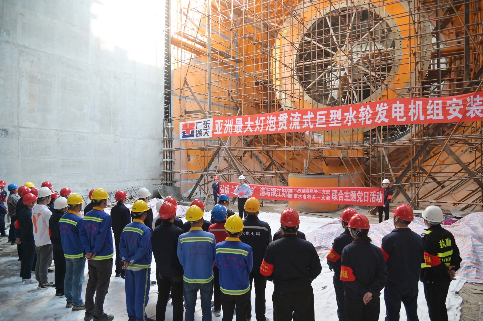 在銀江水電站亞洲最大燈泡貫流式巨型水輪發(fā)電機(jī)組安裝現(xiàn)場(chǎng),川投能源機(jī)關(guān)二支部書(shū)記李睿講授了工地微黨課《承諾》,與大家一起重溫銀江水電站建設(shè)過(guò)程中的感人故事。活動(dòng)中,徐孝剛用通俗易懂的語(yǔ)言,為現(xiàn)場(chǎng)同志介紹了銀江水電站的建設(shè)特點(diǎn)、施工情況和下一步工程建設(shè)計(jì)劃,并號(hào)召全體黨員和團(tuán)員青年要圍繞“保一爭(zhēng)二”提前發(fā)電重要目標(biāo),團(tuán)結(jié)一心、勇挑重?fù)?dān)、善作善成。