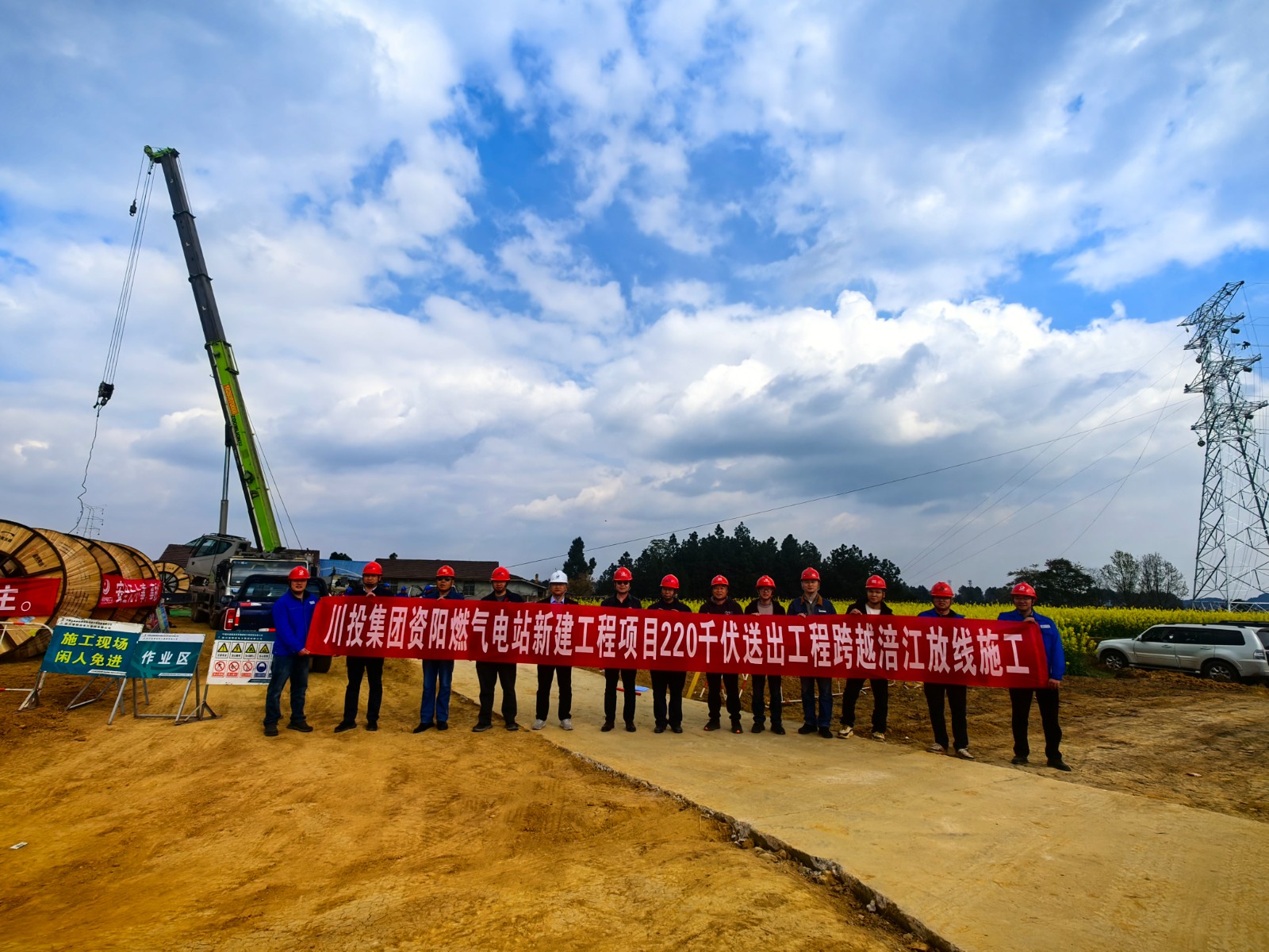 3月12日,川投集團資陽燃氣電站新建工程項目220千伏送出工程靈泉(文武)線路工程首檔放線工作正式開始。該檔線路位于遂寧市船山區(qū)與蓬溪縣交界處,全長2355米,其中P124至P125鐵塔線路跨越涪江,跨距883米,是送出工程最長跨越線檔。