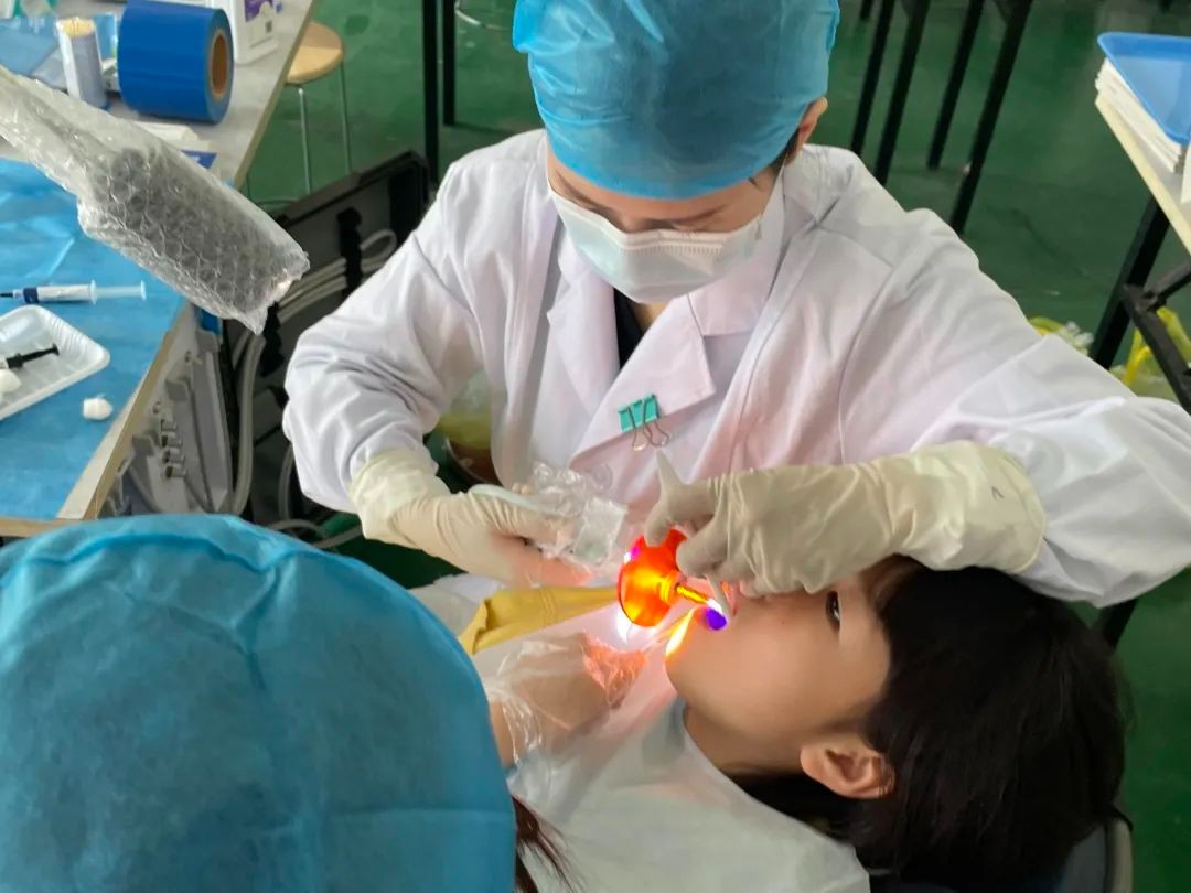 現(xiàn)場,老師傾情指導孩子們?nèi)绾巫龊每谇槐=?,對大家的口腔健康情況進行了篩查,同時為300余名學生建立牙齒健康信息檔案,提出針對性治療方案,并發(fā)放口腔健康宣傳冊,鼓勵大家養(yǎng)成良好的口腔衛(wèi)生習慣。