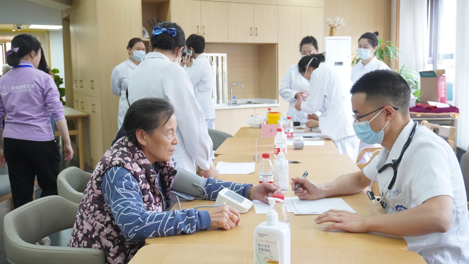 活動中,成都上錦南府醫(yī)院/四川大學(xué)華西醫(yī)院上錦醫(yī)院麻醉手術(shù)中心的醫(yī)生護士們?yōu)槲浜顓^(qū)吉福社區(qū)和川投舒適之家·武侯吉福院長者們進行健康義診。醫(yī)護人員通過了解各位長者的生活起居、基礎(chǔ)疾病的用藥及治療、日??祻?fù)等情況,為咨詢長者提供專業(yè)化建議,并與養(yǎng)老機構(gòu)護理人員溝通長者后續(xù)照護及康復(fù)計劃,切實將長者個性化康復(fù)需求與機構(gòu)護理、醫(yī)療保障有機結(jié)合,為機構(gòu)及社區(qū)長者安享健康幸福晚年生活保駕護航。