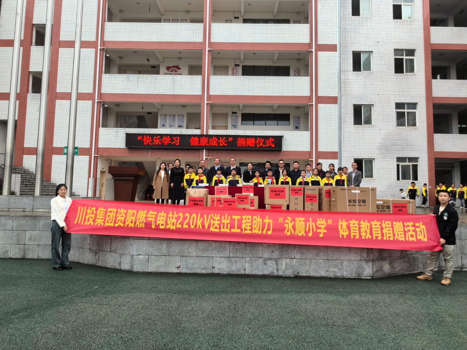 4月10日,川投集團(tuán)資陽燃?xì)怆娬拘陆üこ?20千伏送出工程項(xiàng)目建設(shè)、施工單位一行赴安岳縣永順小學(xué)開展“快樂學(xué)習(xí) 健康成長”愛心捐贈(zèng)活動(dòng)。資陽氣電副總經(jīng)理嚴(yán)天元,明遠(yuǎn)電力集團(tuán)黨總支部書記、董事長黃心寧,安岳縣永順鎮(zhèn)鎮(zhèn)長李永升、永順小學(xué)校長蔣志輝、副校長唐琴及師生代表參加捐贈(zèng)活動(dòng)。