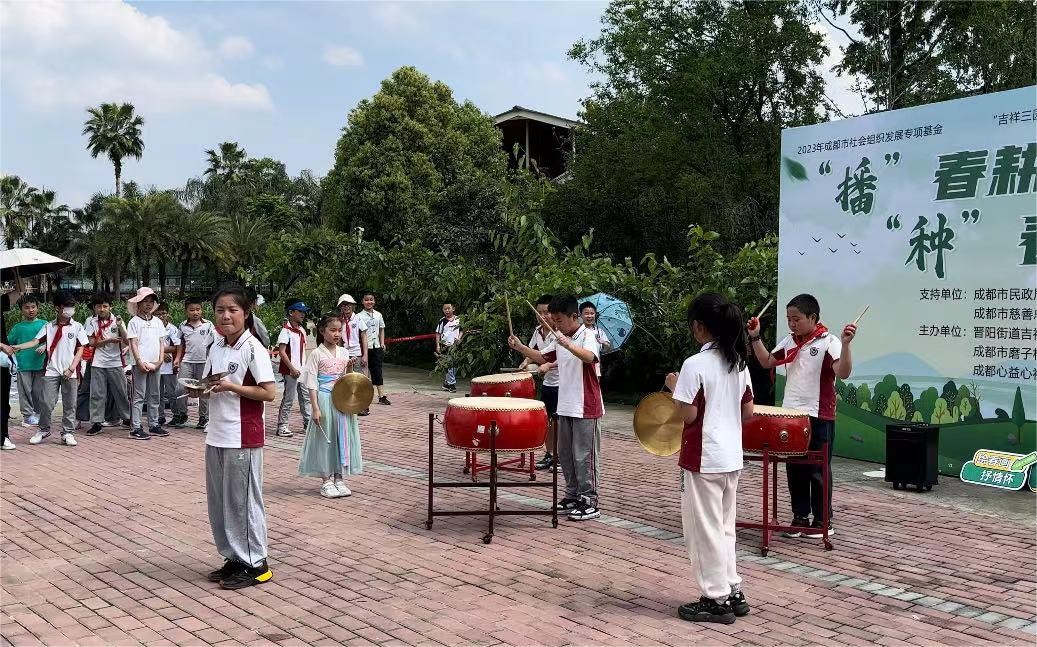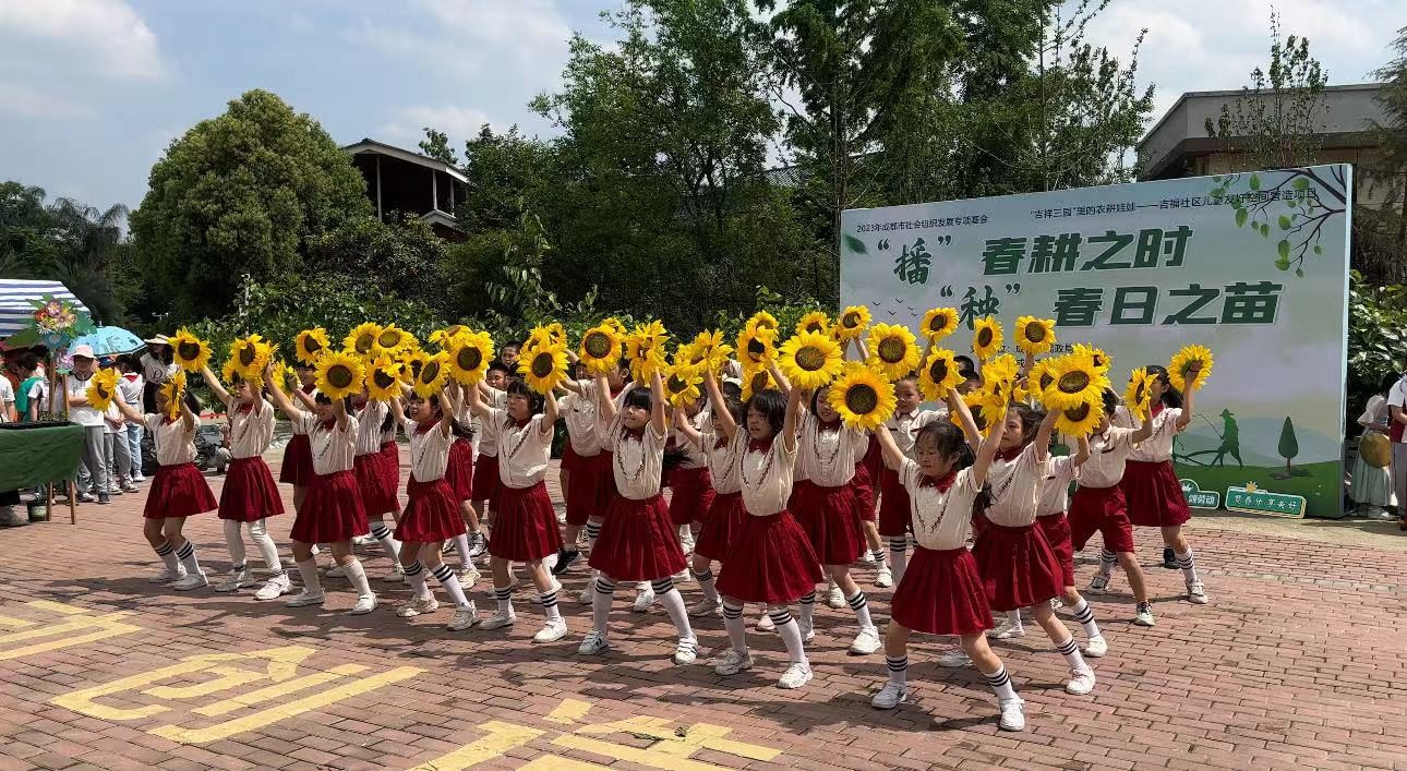 成都市磨子橋小學(xué)分校的師生們?yōu)榇焊顒?dòng)奉上精彩表演。身心投入、聲情并茂的演出,成為活動(dòng)中一道別樣的風(fēng)景線,寄托著莘莘學(xué)子對(duì)春日播種季的憧憬與期待。
