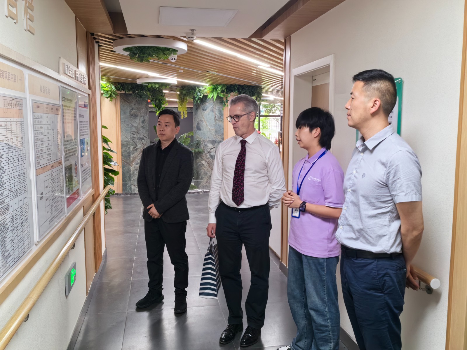 4月29日,英國知名老年醫(yī)學(xué)專家、Age Care Technologies?(ACT)創(chuàng)始人Ian Philip教授到訪川投舒適之家·武侯吉福院。川投盛櫸公司黨支部書記、執(zhí)行董事、總經(jīng)理?xiàng)铒w陪同調(diào)研。