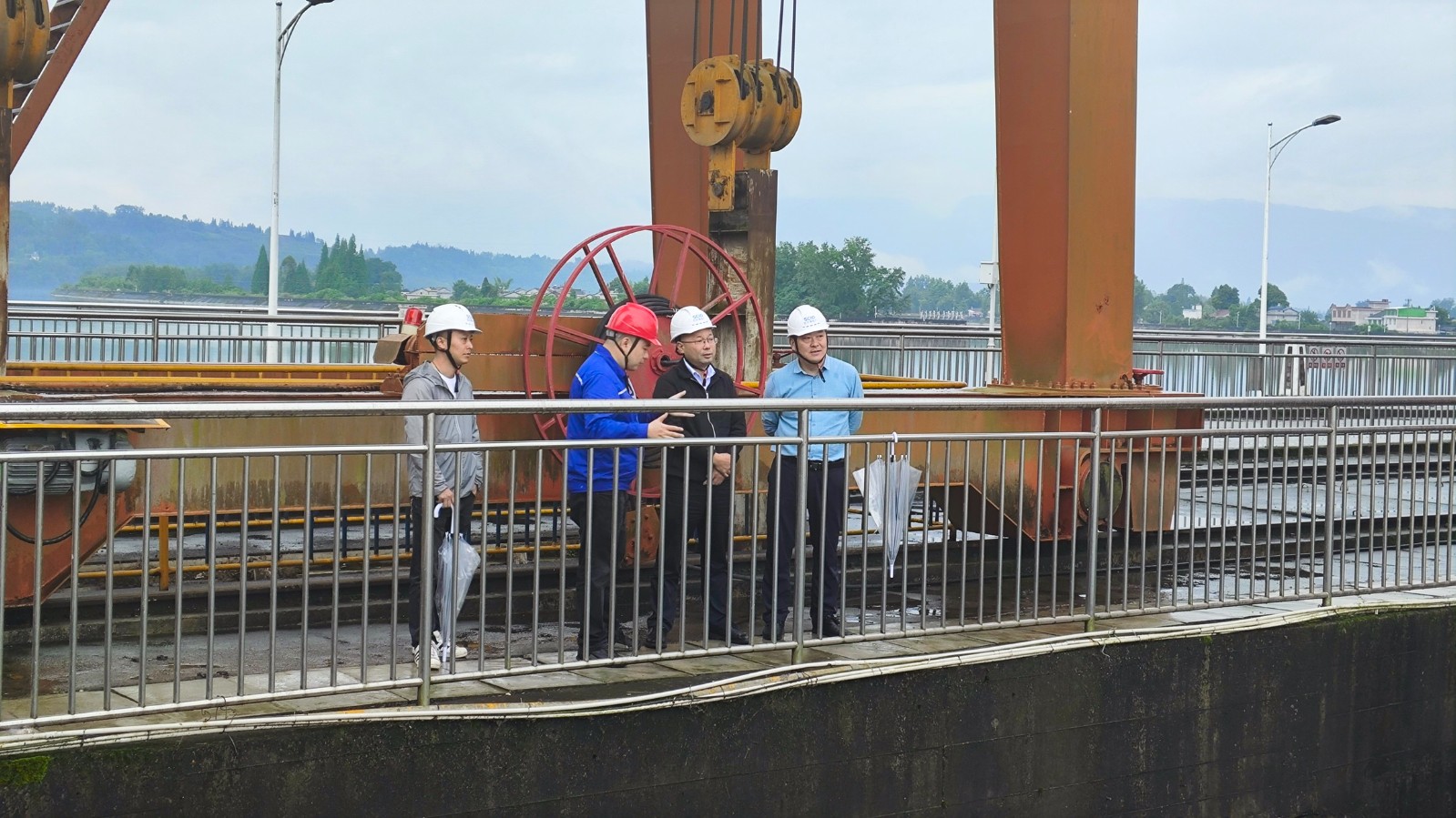 楊傳華一行實(shí)地察看電廠前池庫區(qū)、大壩、泄洪沖沙閘等工程,對(duì)防汛工作落實(shí)情況、應(yīng)急預(yù)案修訂、監(jiān)測(cè)預(yù)警與聯(lián)動(dòng)、應(yīng)急物資儲(chǔ)備工作情況進(jìn)行檢查,并現(xiàn)場(chǎng)聽取電廠防汛抗旱責(zé)任落實(shí)、水庫調(diào)度管理、極端天氣防范應(yīng)對(duì)措施等工作情況的匯報(bào)。
