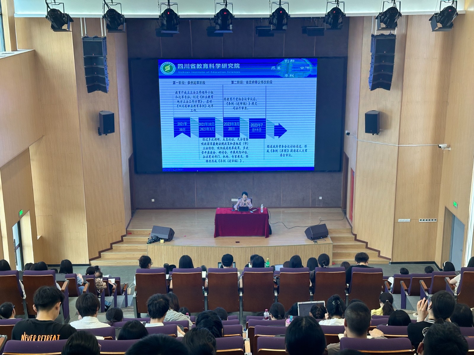 為認(rèn)真貫徹落實(shí)《四川省職業(yè)教育條例》精神,努力推進(jìn)學(xué)院教育改革發(fā)展,全面提高技術(shù)技能人才培養(yǎng)質(zhì)量,提升現(xiàn)代化辦學(xué)水平,根據(jù)“學(xué)習(xí)規(guī)范提升年”活動(dòng)整體安排,5月21日,學(xué)院邀請(qǐng)四川省教育科學(xué)研究院職業(yè)教育與終身教育研究所所長(zhǎng)屈璐博士作四川省職業(yè)教育條例宣貫主題講座,學(xué)院在家領(lǐng)導(dǎo)班子成員出席,全院教職員工參加。