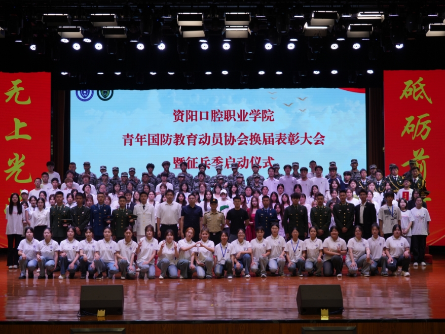 為進一步激發(fā)青年學子參軍報國的積極性,培養(yǎng)學生愛國情懷,近日,資陽口腔職業(yè)學院青年國防教育動員協(xié)會隆重舉行第一屆換屆表彰大會暨征兵季啟動儀式。學院副院長夏余建出席,青年國防教育動員協(xié)會全體成員參加。