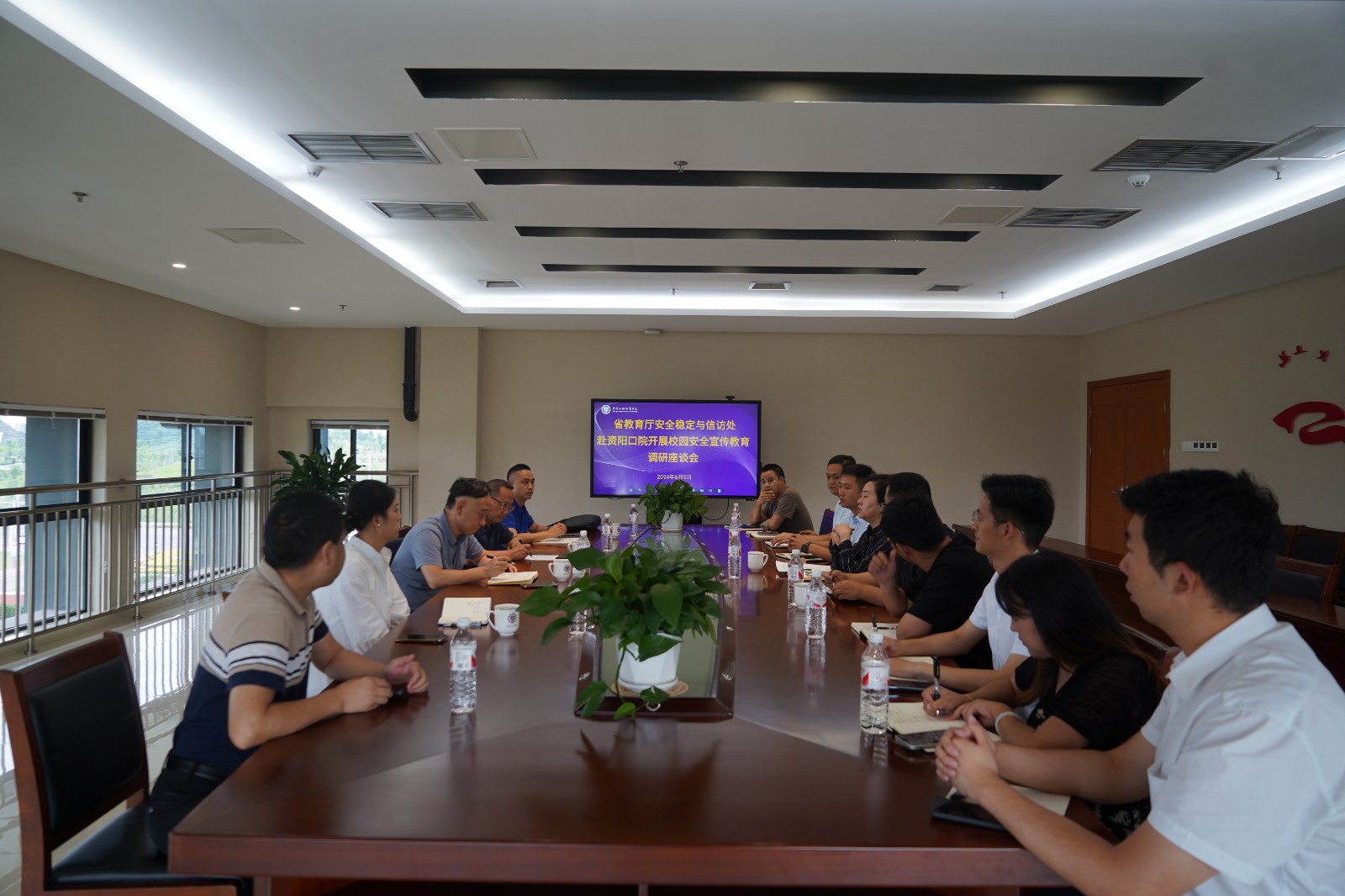 為強(qiáng)化落實(shí)省委教育工委、教育廳領(lǐng)導(dǎo)關(guān)于做好校園安全工作指示精神,進(jìn)一步夯實(shí)安全教育在人防體系建設(shè)方面的本位作用,提升校園安全宣傳實(shí)效,6月5日,省教育廳安全穩(wěn)定與信訪處赴資陽口腔職業(yè)學(xué)院開展校園安全宣傳調(diào)研座談會(huì),省教育廳安全穩(wěn)定與信訪處高級(jí)實(shí)驗(yàn)師禹華美,“四川教育安全”陳波一行,學(xué)院黨委委員,工會(huì)副主席曹華出席,各相關(guān)職能部門負(fù)責(zé)人,相關(guān)工作人員參加。