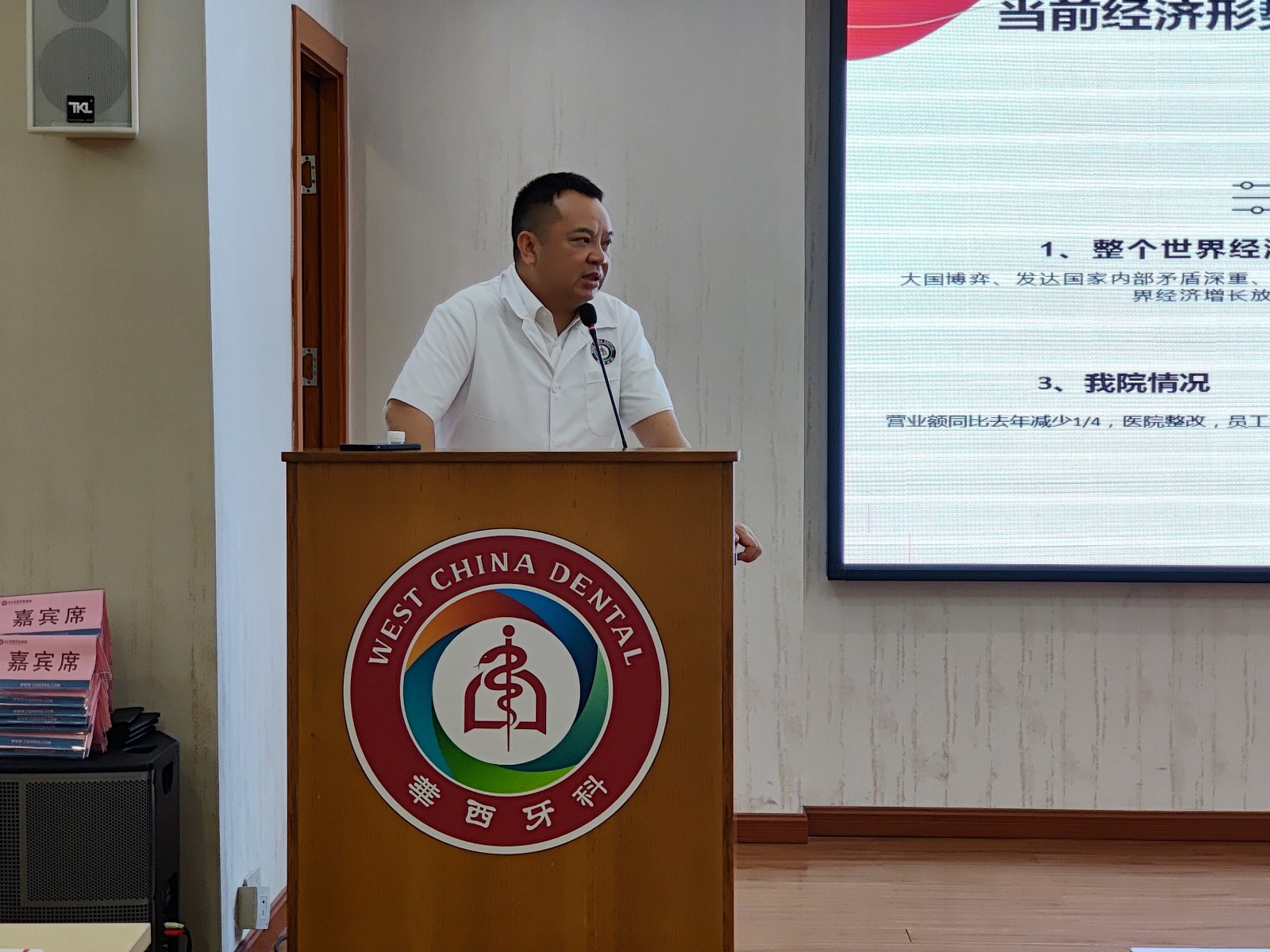 會(huì)上,陸勇軍總結(jié)了醫(yī)院成立以來(lái)的經(jīng)營(yíng)發(fā)展情況,重點(diǎn)分析了目前的行業(yè)形勢(shì)及重慶華西牙科醫(yī)院上半年經(jīng)營(yíng)情況,結(jié)合個(gè)性化醫(yī)療時(shí)代以及行業(yè)未來(lái)發(fā)展趨勢(shì)進(jìn)行了研判。陸勇軍表示,當(dāng)前口腔醫(yī)療行業(yè)低價(jià)競(jìng)爭(zhēng)現(xiàn)象嚴(yán)重,對(duì)整體市場(chǎng)造成了一定沖擊。他強(qiáng)調(diào),提高專業(yè)知識(shí)、引進(jìn)先進(jìn)設(shè)備、優(yōu)化就診流程提升、關(guān)注服務(wù)創(chuàng)新,提升就醫(yī)體驗(yàn)才是破局的關(guān)鍵,重慶華西牙科醫(yī)院要加強(qiáng)個(gè)性化醫(yī)療服務(wù)開(kāi)展,打造醫(yī)生個(gè)人形象IP,提升醫(yī)護(hù)人員專業(yè)技能,持續(xù)提高醫(yī)院經(jīng)營(yíng)發(fā)展能力。
