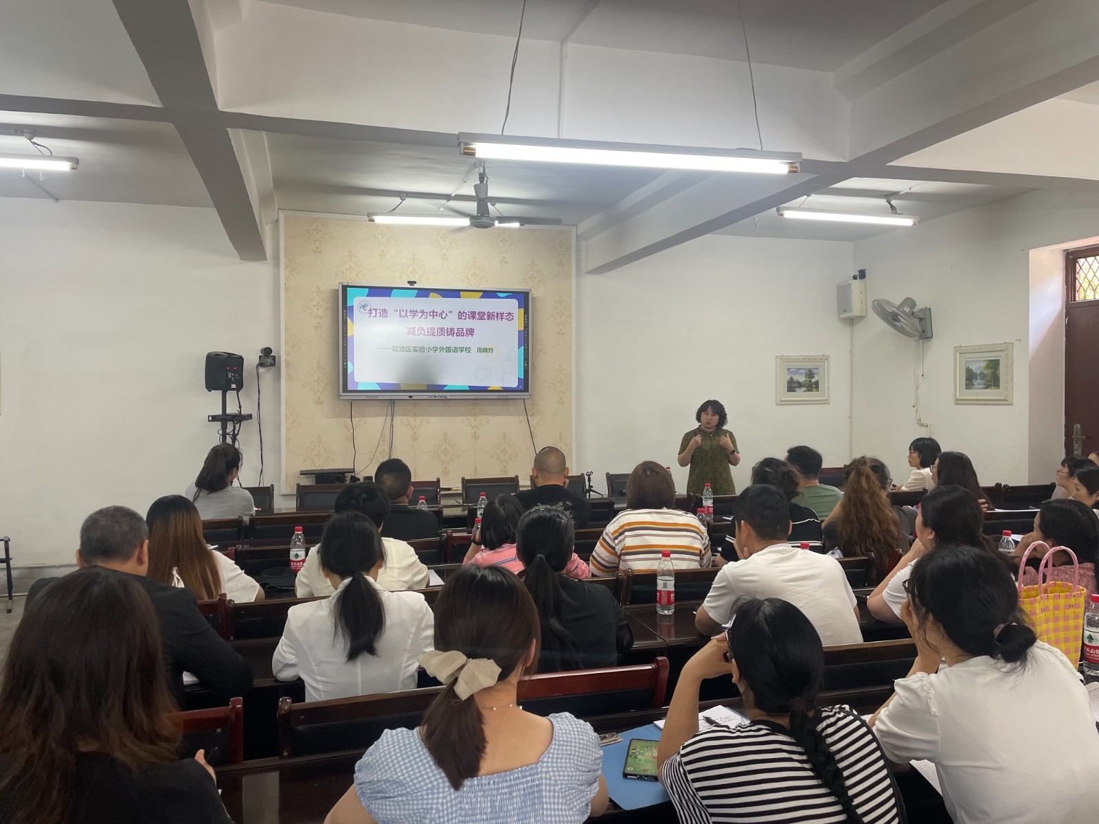 在教室里,來自雙流區(qū)棠湖小學(xué)(南區(qū))的黃佩茜老師為學(xué)生帶來了一節(jié)預(yù)習(xí)導(dǎo)學(xué)課,根據(jù)學(xué)習(xí)步驟引導(dǎo)學(xué)生開展自主預(yù)習(xí)。來自雙流區(qū)實(shí)驗(yàn)小學(xué)外國語學(xué)校的王甜甜老師通過精講點(diǎn)撥課,帶領(lǐng)學(xué)生入情入境地感悟語言文字的魅力。雙流區(qū)實(shí)驗(yàn)小學(xué)外國語學(xué)校校長、四川省特級教師、雙流區(qū)名師周曉玲工作室導(dǎo)師周曉玲以《語文課程標(biāo)準(zhǔn)》理念為切入點(diǎn),圍繞四年級下冊第八單元《巨人的花園》這篇文章深入淺出地剖析了兩種課型的設(shè)計理念,帶來了工作室關(guān)于“自能課堂”的最新研究成果,傳播教育新理念。