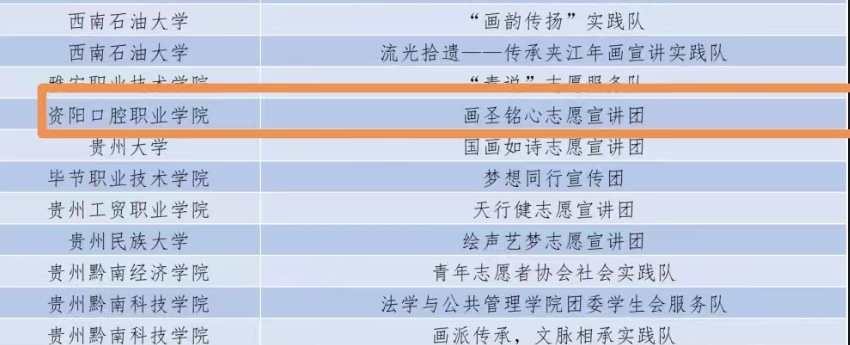 近日,團(tuán)中央“中國(guó)歷代繪畫(huà)大系”全國(guó)大學(xué)生志愿宣講團(tuán)入選名單公布,資陽(yáng)口腔職業(yè)學(xué)院由醫(yī)學(xué)系輔導(dǎo)員霍喜老師指導(dǎo)的“畫(huà)圣銘心志愿宣講團(tuán)”成功入選。