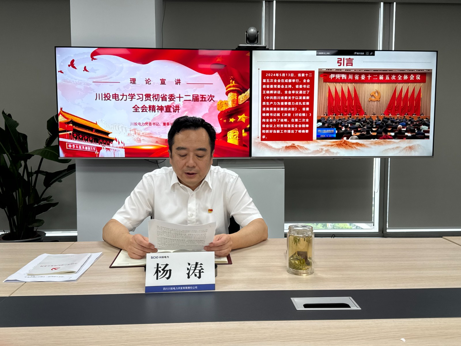 為全面深入學(xué)習(xí)宣傳貫徹省委十二屆五次全會精神,切實將公司各級黨組織和廣大黨員干部的思想行動統(tǒng)一到省委的決策部署上來,7月8日,川投電力黨委書記、董事長楊濤專題宣講中共四川省委十二屆五次全會精神。