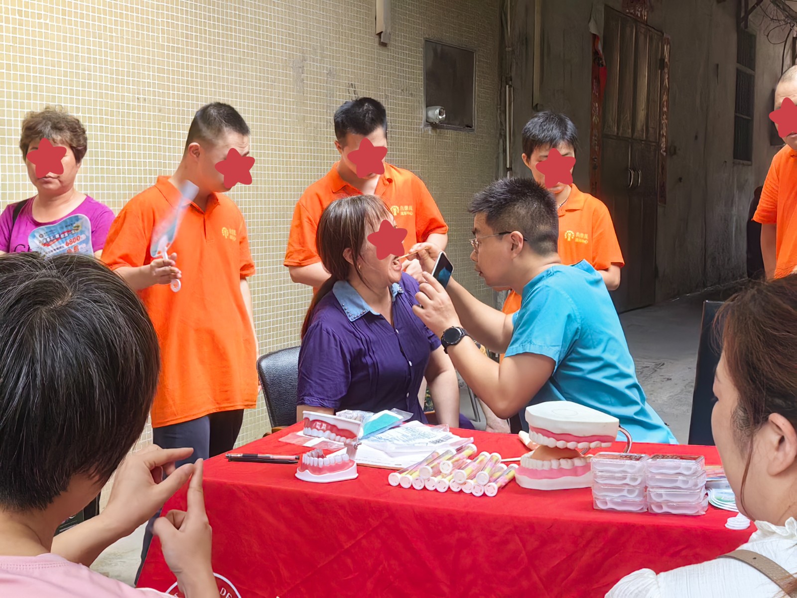 活動(dòng)現(xiàn)場,汕頭口腔醫(yī)院張黎醫(yī)生為關(guān)愛中心成員開展口腔衛(wèi)生健康科普知識講座,一方面從專業(yè)的角度為工作人員進(jìn)行口腔護(hù)理的指導(dǎo),一方面運(yùn)用通俗易懂的語言讓“唐寶”們掌握口腔護(hù)理的正確流程。隨后,義診團(tuán)隊(duì)為現(xiàn)場人員開展了口腔健康檢查,幫助其分析口腔問題并提供相應(yīng)的治療建議?;顒?dòng)尾聲,汕頭市殘聯(lián)、汕頭口腔醫(yī)院向關(guān)愛中心成員發(fā)放了慰問品、口腔衛(wèi)生護(hù)理品,鼓勵(lì)成年“唐寶”們不斷提升就業(yè)技能,積極走向社會。