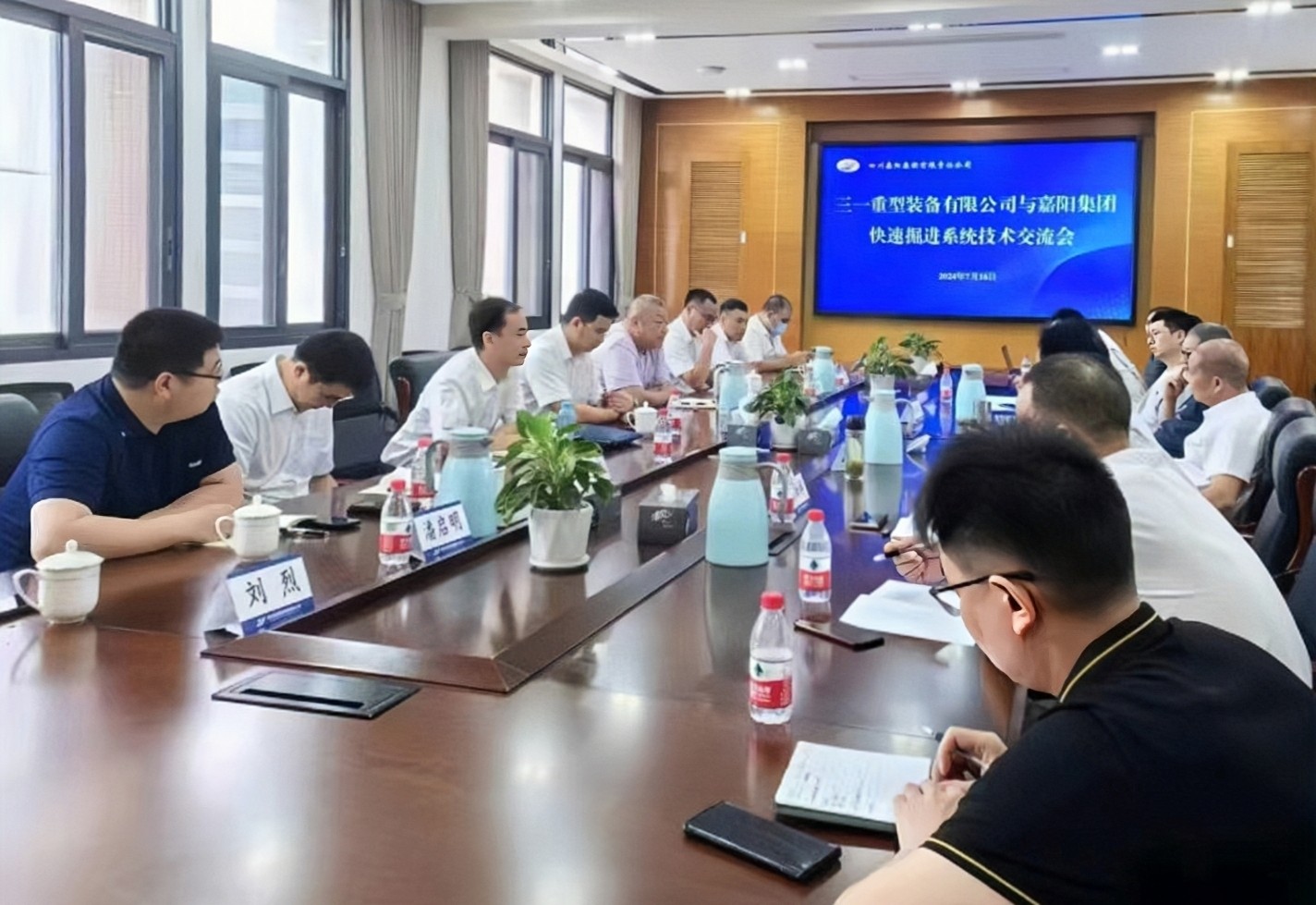 7月16日,嘉陽集團(tuán)與三一重型裝備有限公司開展快速掘進(jìn)系統(tǒng)技術(shù)交流。嘉陽集團(tuán)黨委副書記、總經(jīng)理范勤英,副總經(jīng)理王維洪,副總經(jīng)理詹本遠(yuǎn)參加會議。
