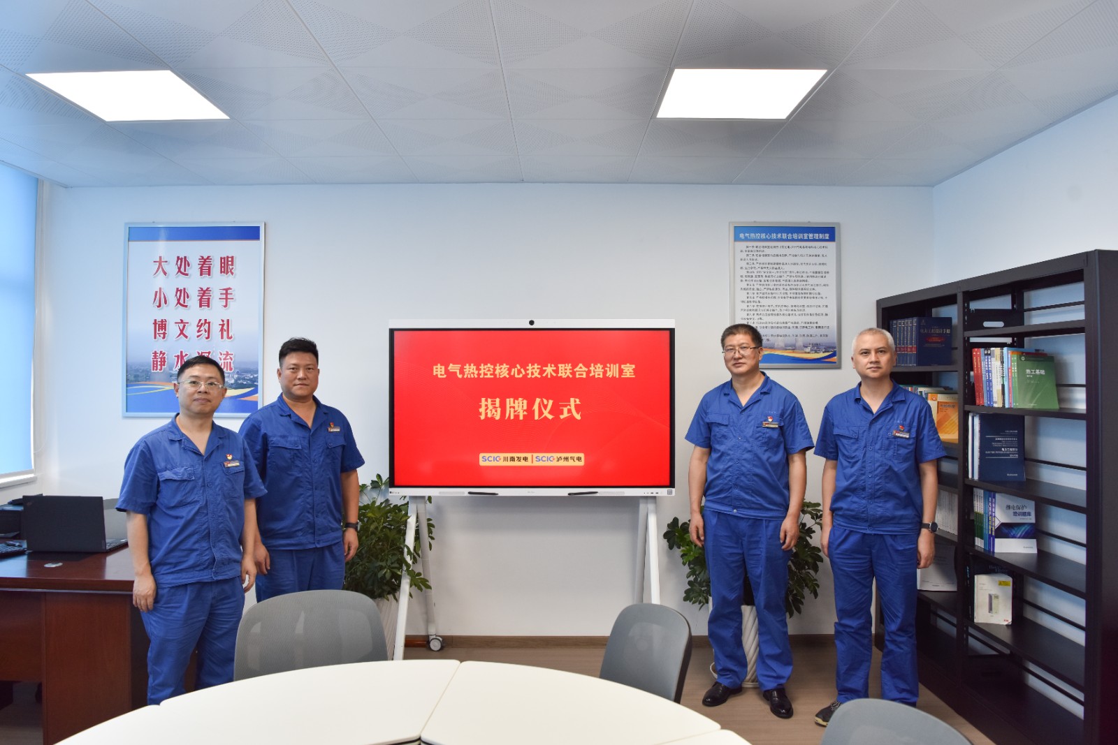 為提高公司員工對(duì)電氣、熱控核心技術(shù)的掌握水平,同時(shí)滿足瀘州氣電技能培訓(xùn)需要,川南發(fā)電與瀘州氣電攜手共同組建的電氣熱控核心技術(shù)聯(lián)合培訓(xùn)室于8月9日揭牌并投入使用。