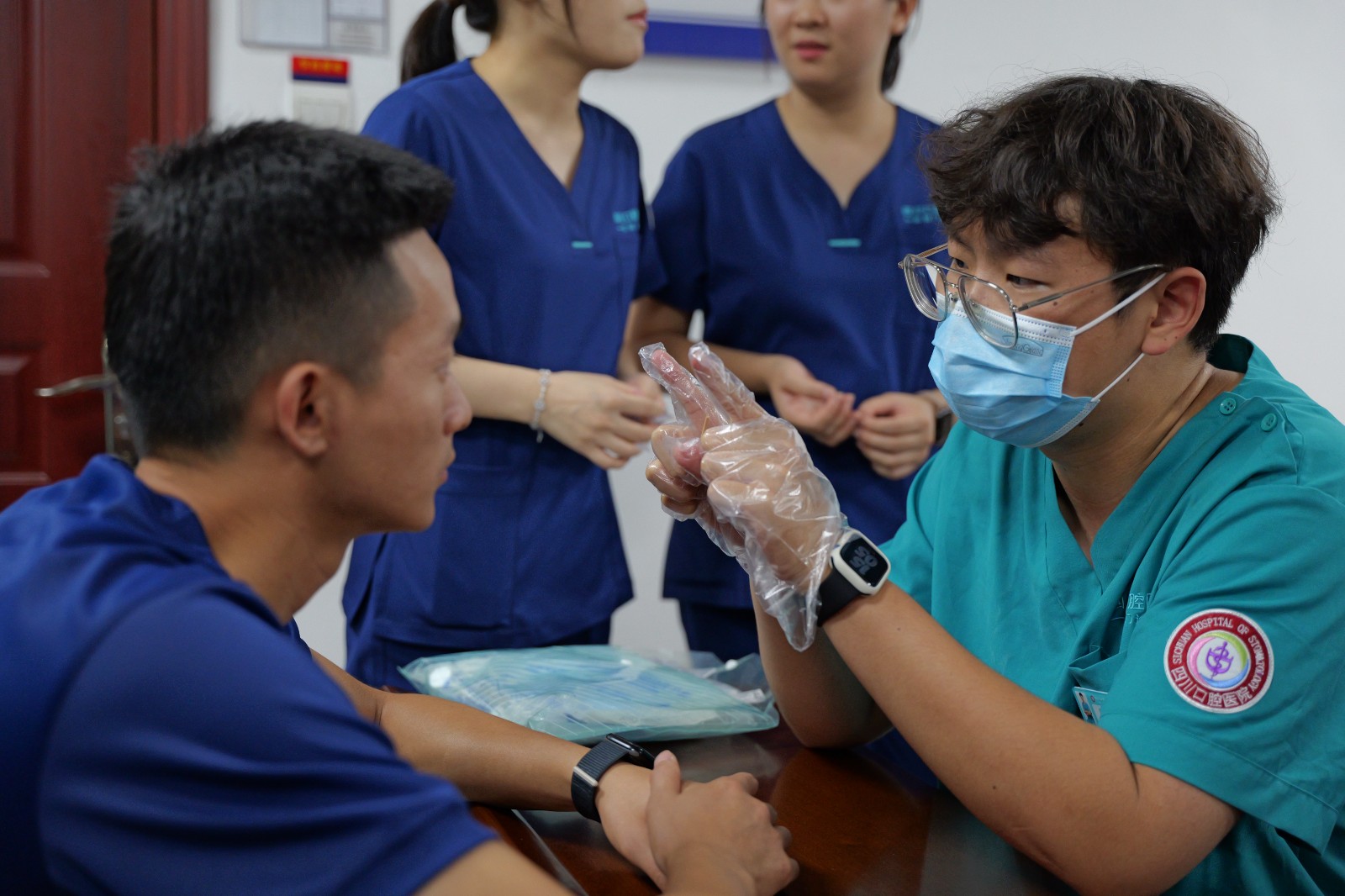 隨后,醫(yī)療團(tuán)隊(duì)為隊(duì)員們逐一進(jìn)行了細(xì)致的口腔檢查,對隊(duì)員們存在的口腔健康問題提出了具體的意見建議,并針對普遍存在的牙周炎、齲齒的預(yù)防和治療進(jìn)行了詳細(xì)的科普,強(qiáng)調(diào)了吸煙、碳酸飲料對口腔健康的危害。通過面對面的交流,隊(duì)員們對自身的口腔健康狀況有了更清晰的認(rèn)識,他們紛紛表示將樹立起良好的口腔保健意識,養(yǎng)成良好的口腔保健習(xí)慣。