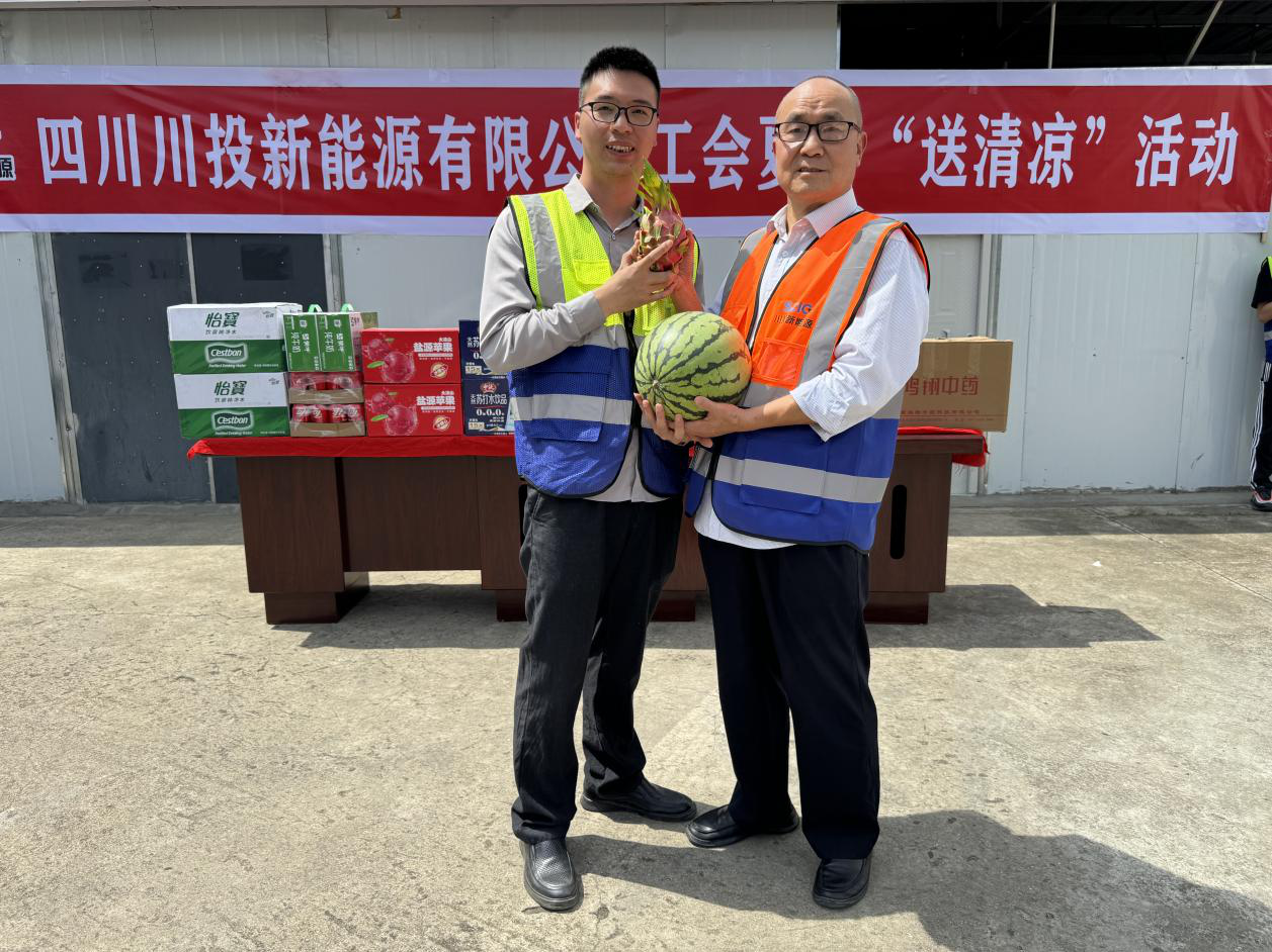 8月20日,川投新能源公司董事、工會(huì)主席文匯鋒帶隊(duì)前往涼山州德昌2#地塊跑馬坪光伏項(xiàng)目部開展“送清涼”慰問,為項(xiàng)目建設(shè)一線干部職工發(fā)放防暑藥品及夏季降溫物資。