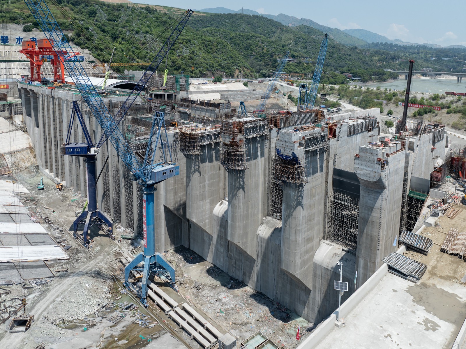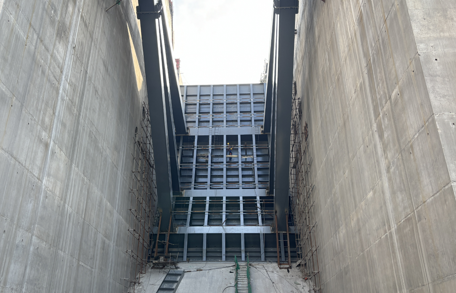徐孝剛表示,金屬結(jié)構(gòu)安裝是實(shí)現(xiàn)工程下閘蓄水目標(biāo)的核心任務(wù),自7月下旬首節(jié)弧形工作門吊裝以來,在不到3個(gè)月的時(shí)間內(nèi),將要完成近萬噸的安裝工程量,工期緊、任務(wù)重、難度大,參建各方超前謀劃、提前部署,深入開展設(shè)計(jì)及施工優(yōu)化,多次專題研討安裝方案并組織專家論證,突破多項(xiàng)常規(guī)方法,采取鋼絞線提升裝置安裝尾水事故檢修門、臨時(shí)平臺(tái)配合汽車吊站位安裝弧形工作門、門槽安裝及其二期混凝土澆筑工序循環(huán)優(yōu)化等一系列超常規(guī)措施,大幅縮短了安裝工期,取得了階段性成果,希望各參建單位持續(xù)保持昂揚(yáng)斗志、乘勢(shì)而上,協(xié)同并進(jìn)、合力攻堅(jiān),為全面實(shí)現(xiàn)工程建設(shè)目標(biāo)不懈奮斗。