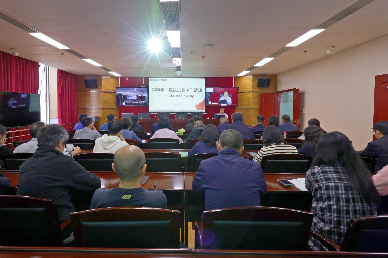 為深入學(xué)習(xí)宣傳貫徹黨的二十屆三中全會(huì)精神,認(rèn)真貫徹落實(shí)習(xí)近平法治思想,按照省國資委《關(guān)于集中開展“送法進(jìn)企業(yè)”活動(dòng)的通知》,10月24日,田灣河公司在成都遠(yuǎn)控1801、電站現(xiàn)場(chǎng)208會(huì)議室舉辦法治教育專題講座,公司在家班子成員、中層管理人員,以及非生產(chǎn)值班全體人員共50余人參加講座。專題講座由公司黨委副書記、職工董事、工會(huì)主席楊坤主持。